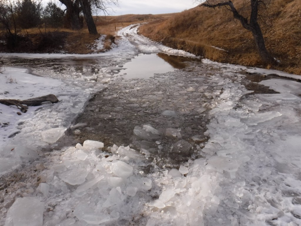 We have almost gotten stuck twice on the long dirt roads in Comanche National Grassland, once in deep mud following a spring thunderstorm and another time on thick ice following a spring blizzard.