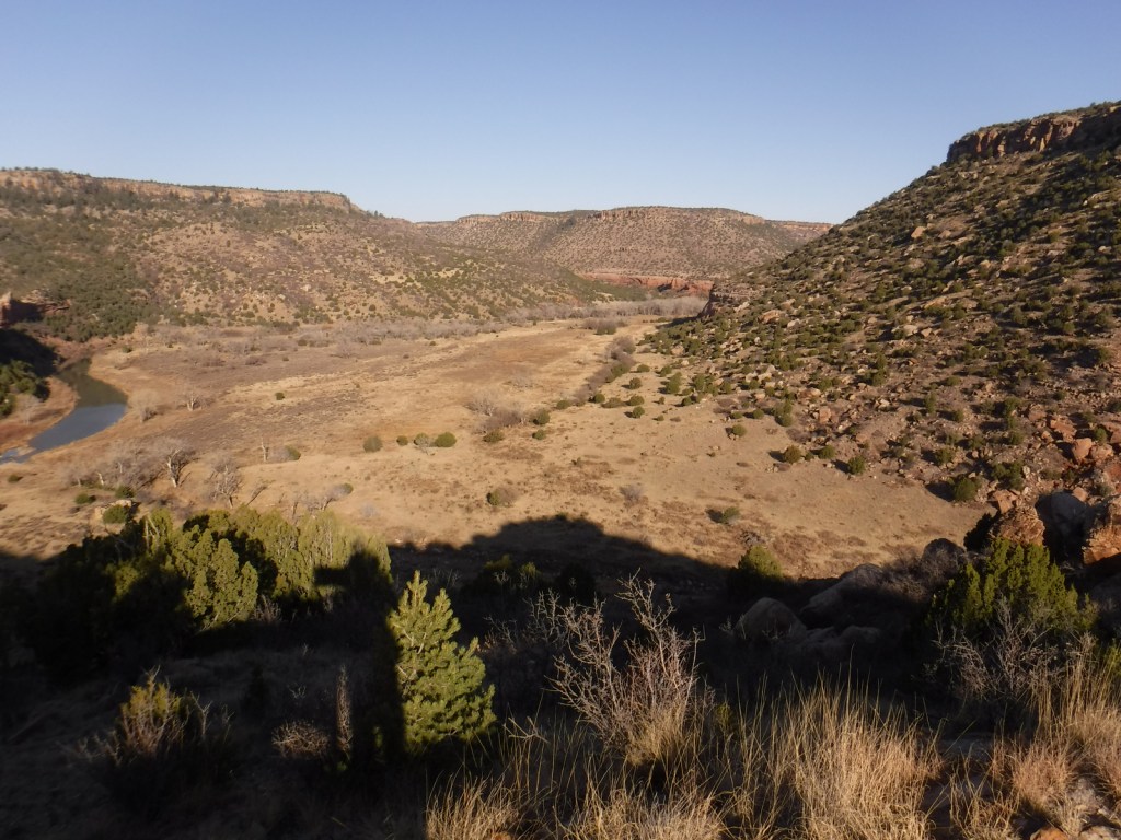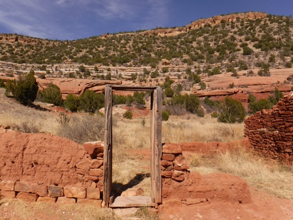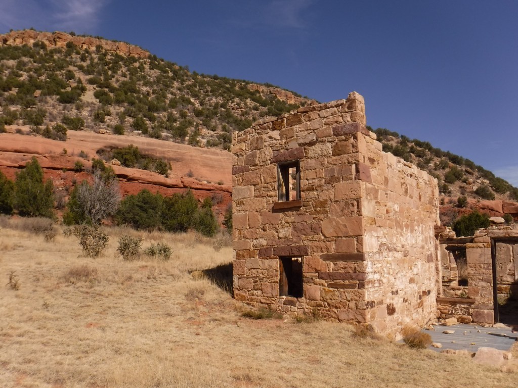 Melvin Mills (an attorney, territorial legislator, and entrepreneur) established the Mills Orchard and Ranch along the Canadian River in 1881.  Flash flooding devastated the orchard in 1904, leading to the ranch’s abandonment a decade later.  In 2005, the U.S. Forest Service and National Park Service collaborated to restore three ranch buildings, and for their efforts they won the Windows on the Past Award for historic preservation.  There are also interpretive signs and a free campground at the bottom of Mills Canyon, located nine miles down unpaved Mills Canyon Road.