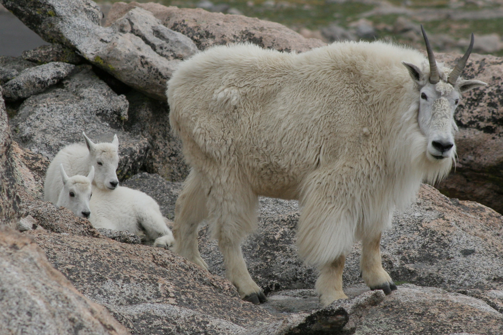 Moose and elk can be found throughout the National Forest, but are often easiest to locate around the west entrance to Rocky Mountain National Park. Bighorn sheep and mountain goats are known to approach cars on the paved road to the top of Mt. Blue Sky (formerly Evans). During our January visit to Arapaho National Recreation Area we spotted a river otter and ouzel (or dipper, a swimming songbird) in one of the few sections of unfrozen creek.