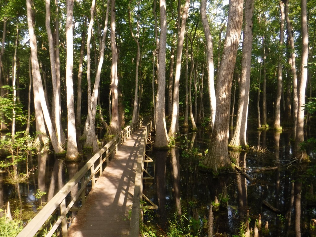 Our favorite trail is the Cypress Swamp Walk at Milepost 122, where a boardwalk crosses a scenic tupelo-baldcypress swamp. The Natchez Trace National Scenic Trail (click here for our blog post) does not follow the entire 444-mile parkway, but exists in five segments totaling 67 miles in length. There are also 15 miles of equestrian trails at Witch Dance (Milepost 233.2) in Tombigbee National Forest.
