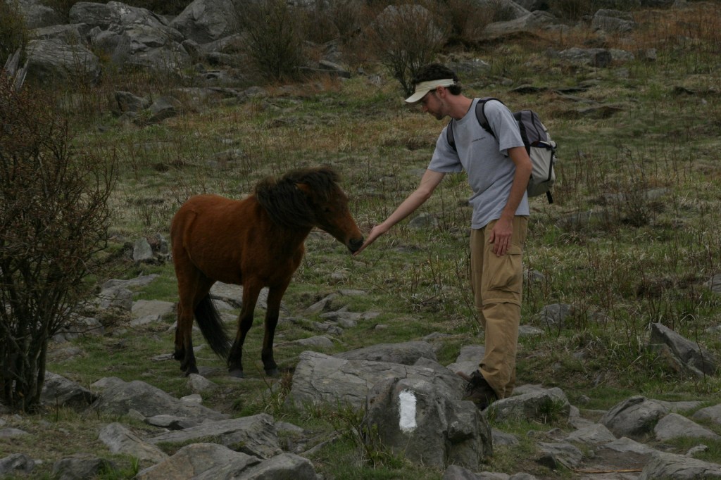Pat Jennings Visitor Center is located six miles south of Interstate 81 in Brushy Mountain, and there are two visitor centers situated along the Virginia Creeper Rail Trail (see our post on Jefferson National Forest). There are multiple routes to reach the summit of Mt. Rogers, but the two shortest are both 4.5 miles one-way from Elk Garden (on State Route 600) or Grayson Highlands State Park (that gains about 1,350 feet in elevation). At Massie Gap, we encountered a herd of wild miniature ponies that had no fear of humans and liked to lick the salt from our skin, but watch your fingers because they will bite.