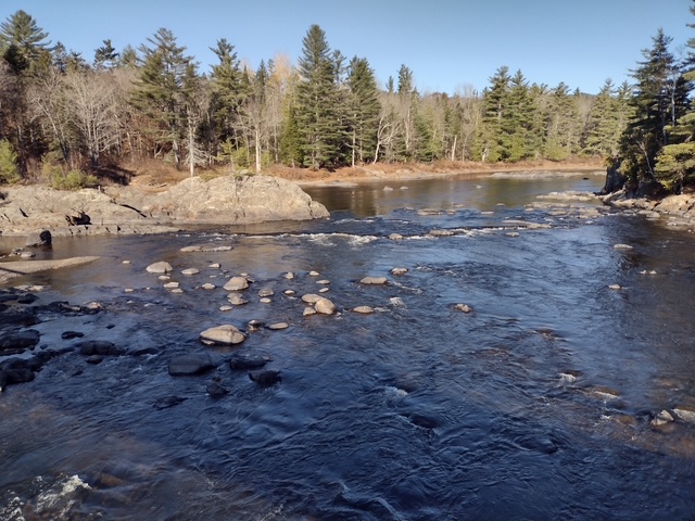 From the Haskell Gate at the end of New River Road, it is 3.5 miles out-and-back to Stair Falls on the East Branch of the Penobscot River. The first part follows an old road and the International Appalachian Trail before branching north at a signed junction to access the water and is also open to bicycles. The only trailhead accessed from a paved road is the 13.6-mile Seboeis Riverside Trail that starts outside the National Monument off Grand Lake Road.