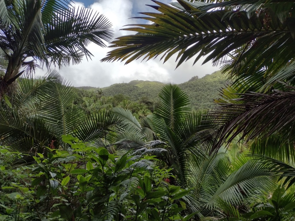 Bird watching is the main attraction, and we spotted a Puerto Rican tody, elfin woods warbler, broad-winged hawk, red-tailed hawk, and many zenaida doves. We never saw one, but when the sun set or it rained we enjoyed listening to the coquis, small tree frogs whose name is onomatopoeia for their call. There are 17 species of coqui in Puerto Rico (11 of them endemic) but only the forest and common coquis emit their namesake sound. Rather than going through a tadpole phase, all coqui emerge as miniature froglets after incubation. Even though this is a tropical rainforest, there are no poisonous snakes on the island, but the endangered Puerto Rican boa can grow up to eight feet in length. Another endangered species, the Puerto Rican parrot may only survive in captivity after Hurricane Maria.