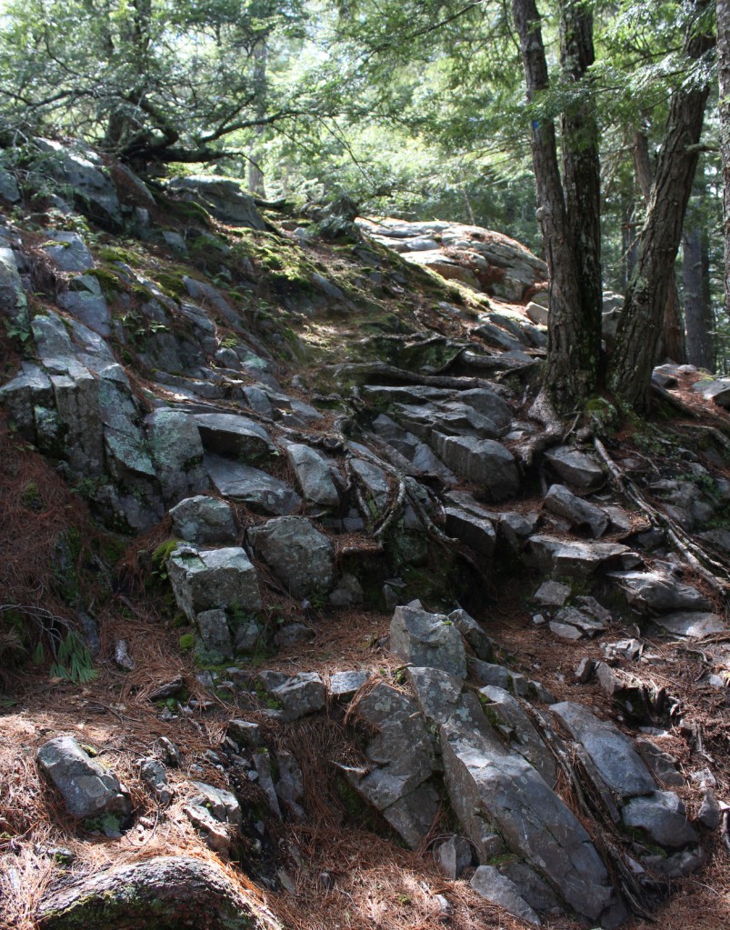 Less than a mile up the Ice Beds Trail, a short climb reaches a viewpoint of the white rocks, a glacier-scoured cliff of Cheshire quartzite that is (part of) the namesake for Robert T. Stafford White Rocks National Recreation Area.
